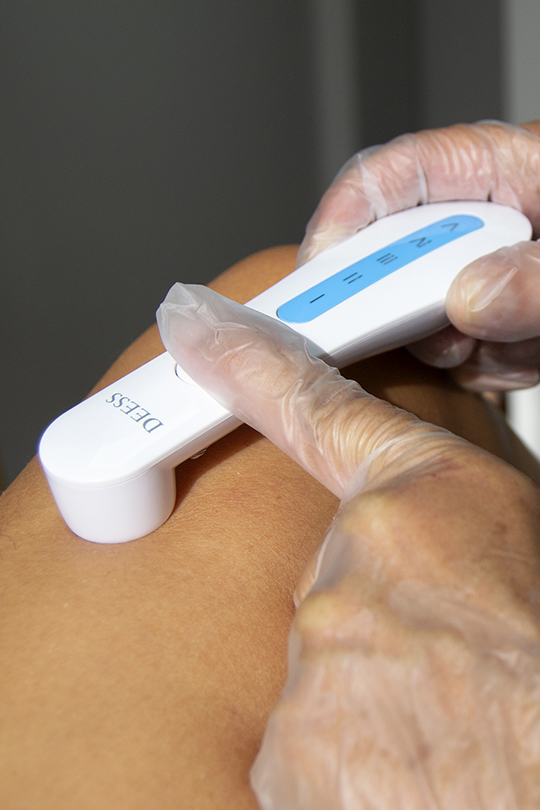 Al final es muy simple, menos sesiones, menos tiempo por sesión, más eficaces y menos doloroso. Otras ventajas: es más sostenible (gasta menos energía) y el equipo pesa menos dándonos la posibilidad de hacer el tratamiento a domicilio.